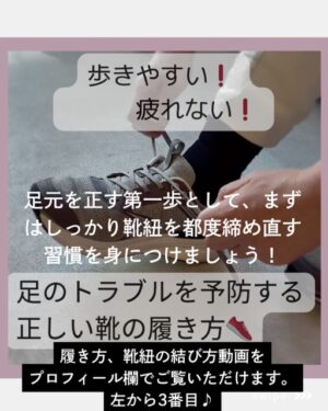 足もとを正す第一歩として、まずはしっかり靴ヒモを都度締め直す習慣を身につけましょう!
